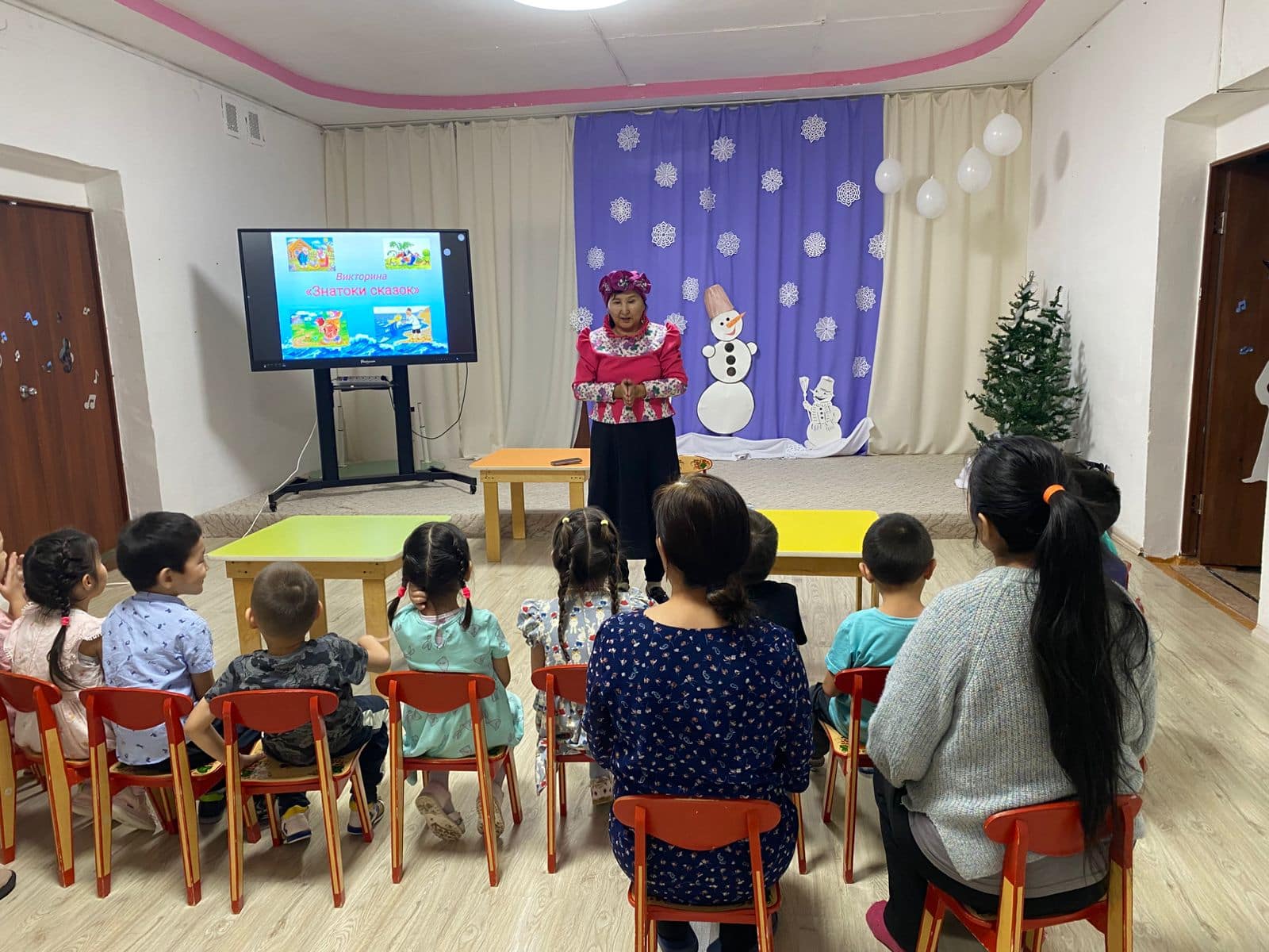 6 октября в актовом зале Мындагайского детсада «Ымыы» проведена увлекательная игра » В мире сказок» для детей подготовительной группы детсада с участием родителей.Участники разделились на три команды.1 тур; интерактивная игра «Знатоки сказок»,где участники соревновались в знании сказок «Три поросенка»,»Сказка о рыбаке и рыбке», «Красная шапочка». «Сказка о золотом ключике «и Буратино».